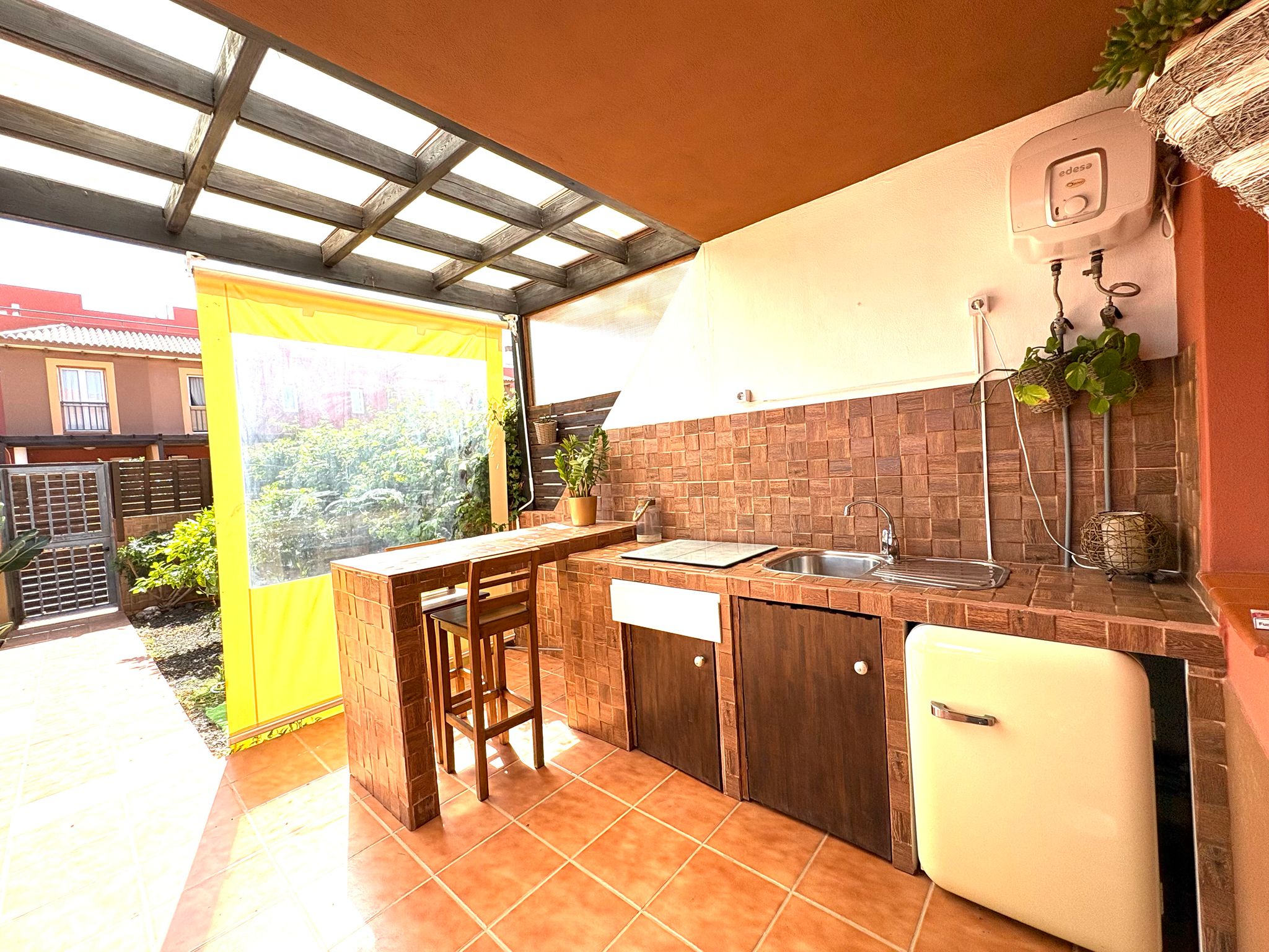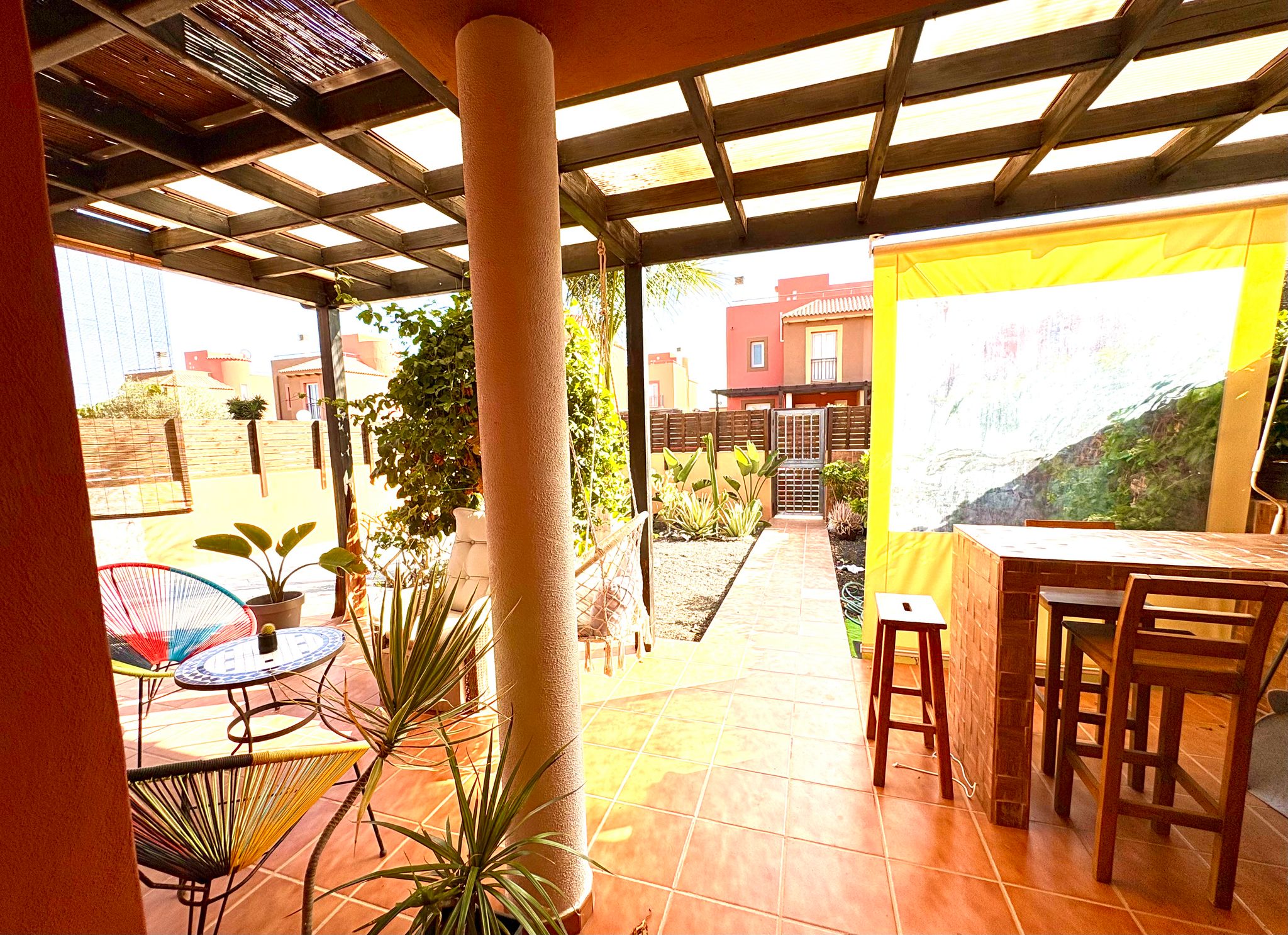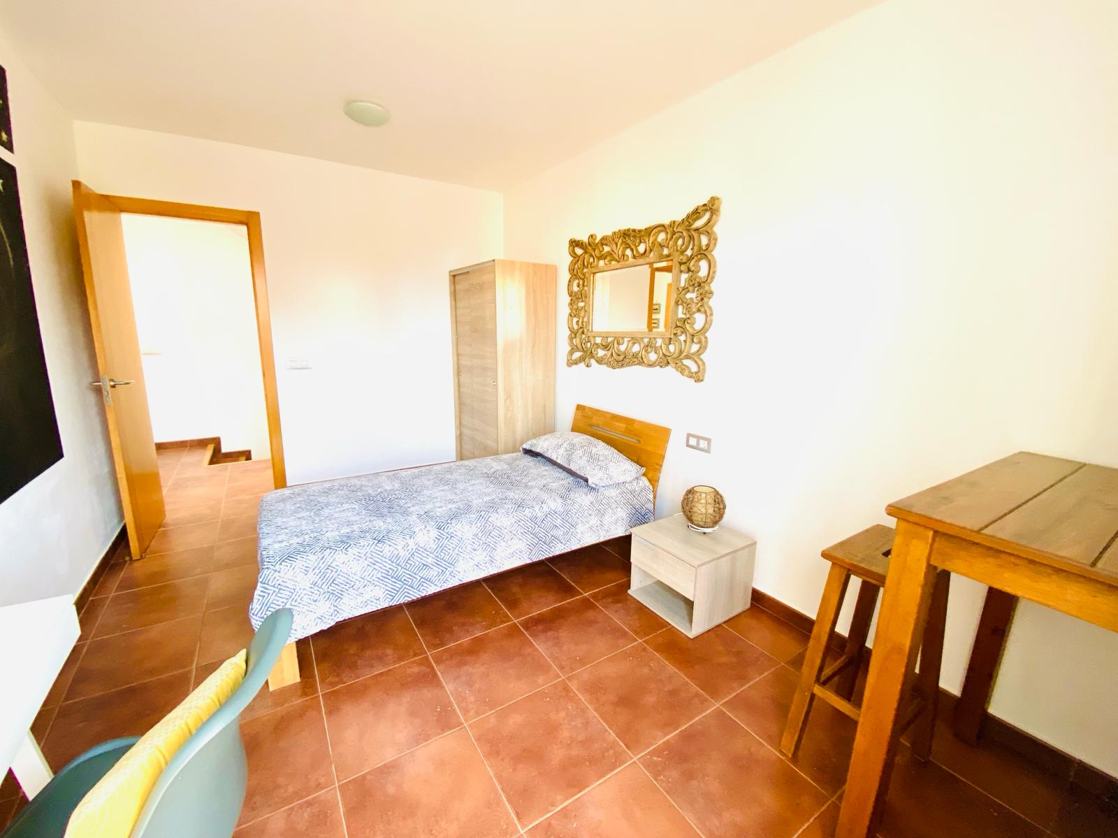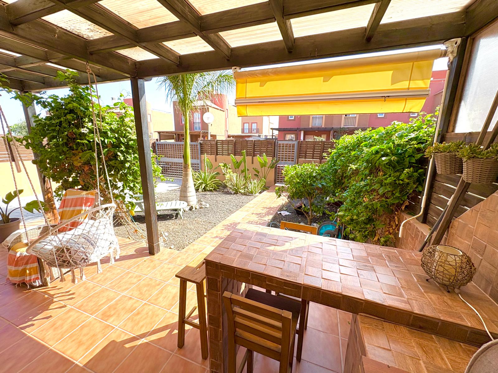 ¡Descubre el hogar de tus sueños en esta encantadora casa adosada en Corralejo! Con una distribución ideal para familias, este chalet ofrece un acogedor dormitorio doble en planta baja y un baño completo con ducha, perfecto para mayor comodidad. La cocina independiente, con acceso directo al jardín trasero, es el lugar ideal para disfrutar de momentos en familia, mientras que el luminoso salón invita a relajarse y disfrutar de la luz natural.
